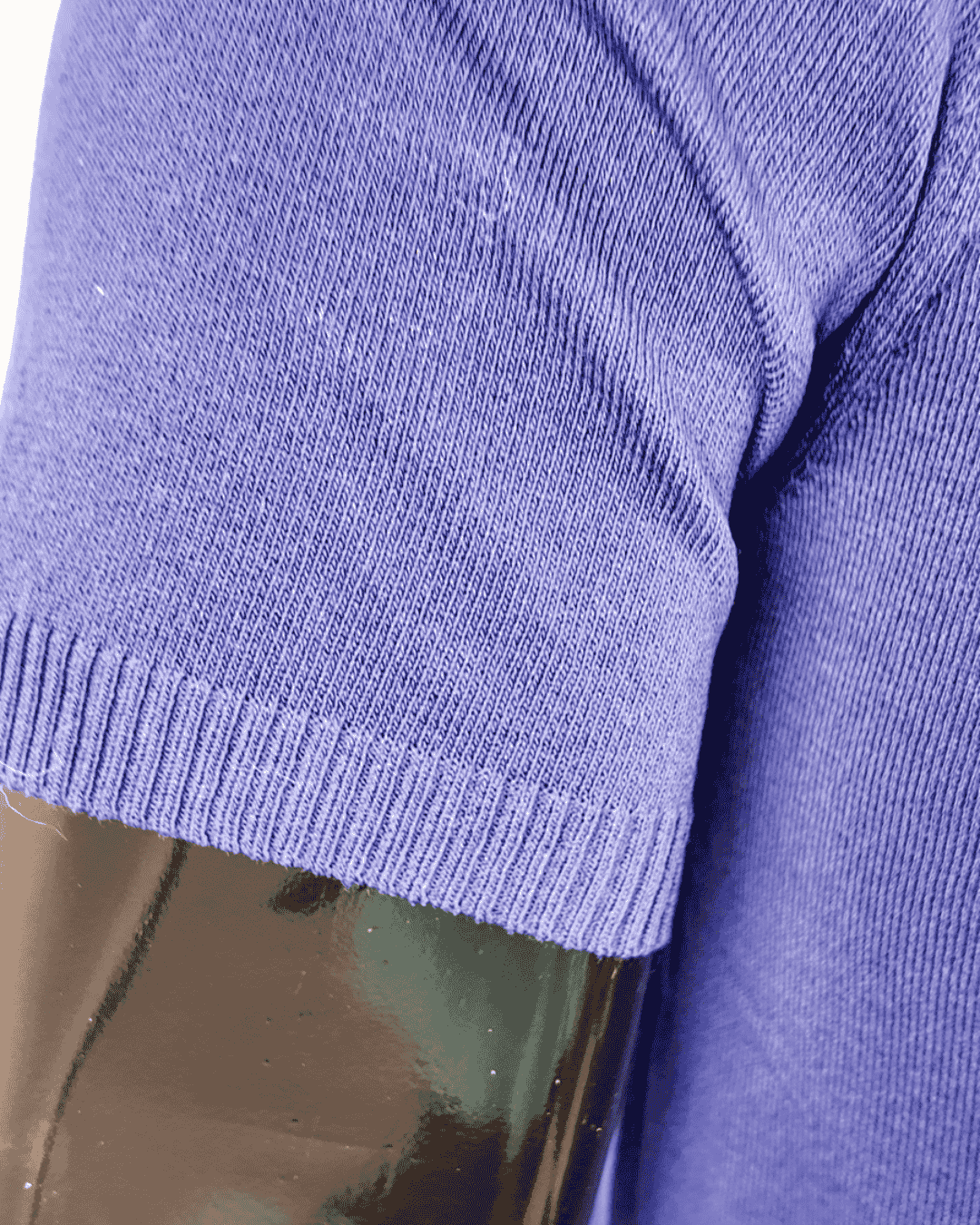 Ligero, fresco y versátil, este jersey de punto de manga corta está confeccionado con un tejido transpirable que garantiza comodidad incluso en los días más cálidos. Su diseño combina la elegancia del punto con la practicidad de una prenda casual, ideal para cualquier ocasión.
