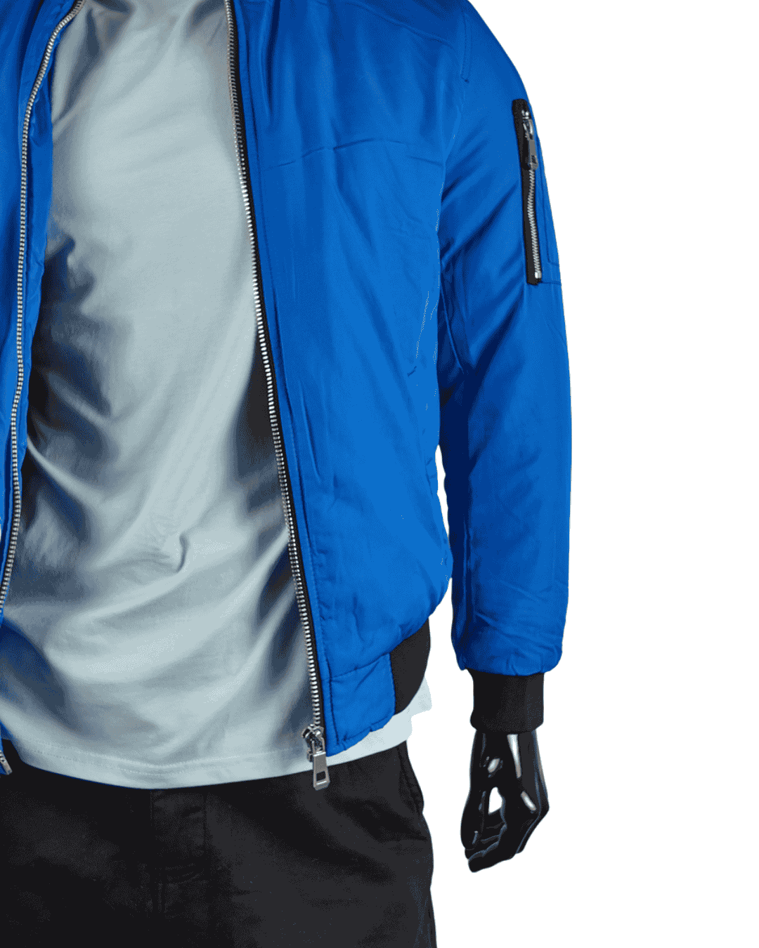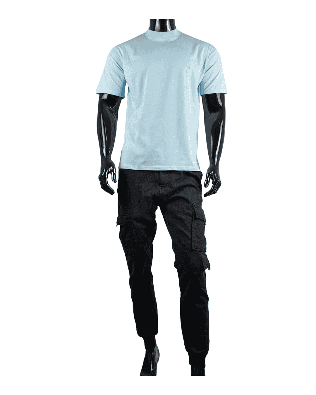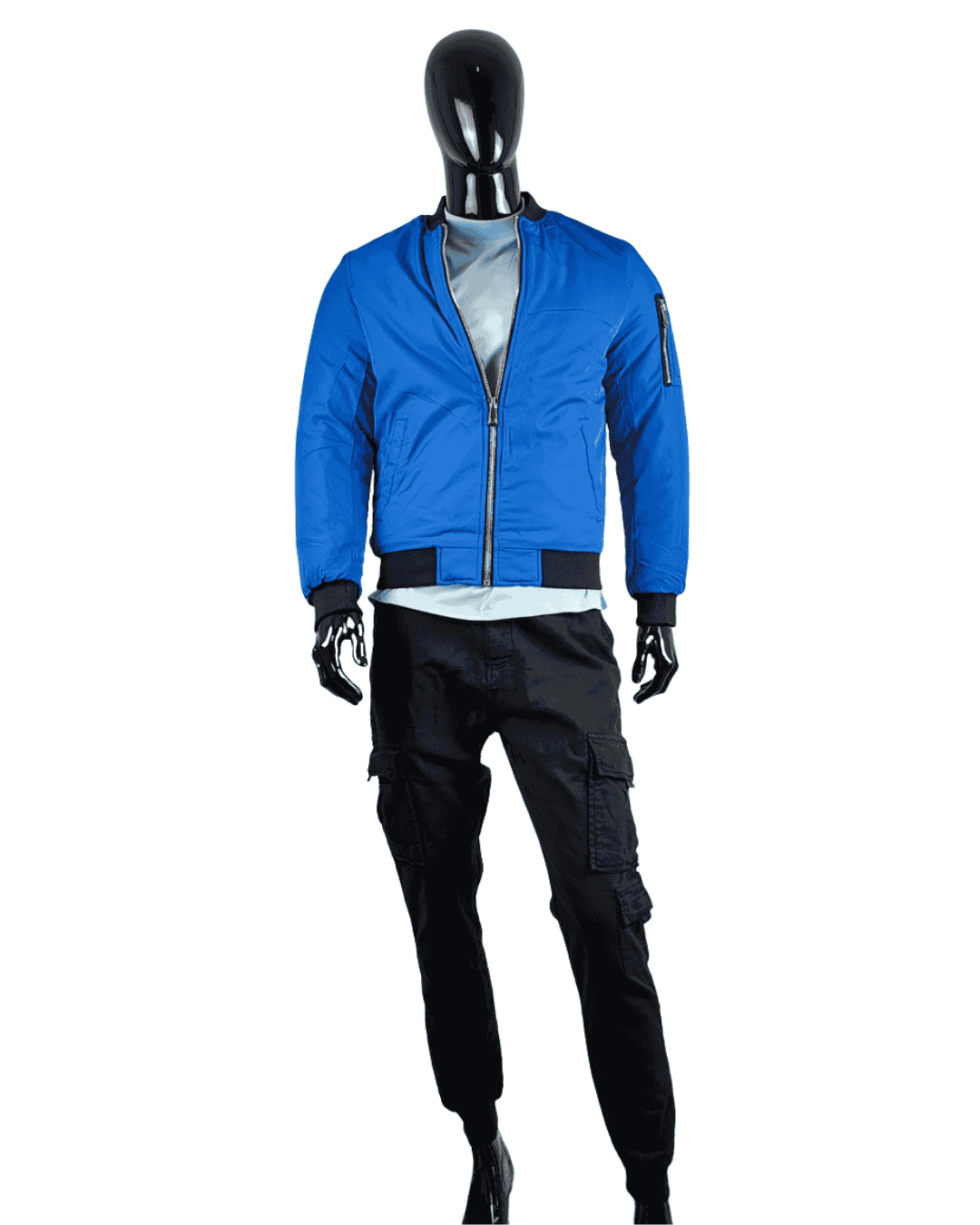Destaca con este conjunto pensado para el hombre moderno que busca comodidad sin perder estilo. La camiseta celeste regular ofrece un look fresco y versátil, ideal para cualquier ocasión casual. Combínala con la chaqueta azul cian, con detalles en negro en cuello y muñecas, que le da un toque deportivo y sofisticado a la vez. Completa el conjunto con el pantalón cargo negro, práctico y funcional, perfecto para un estilo urbano y actual. Un outfit que combina colores y cortes modernos para un look seguro y contemporáneo.