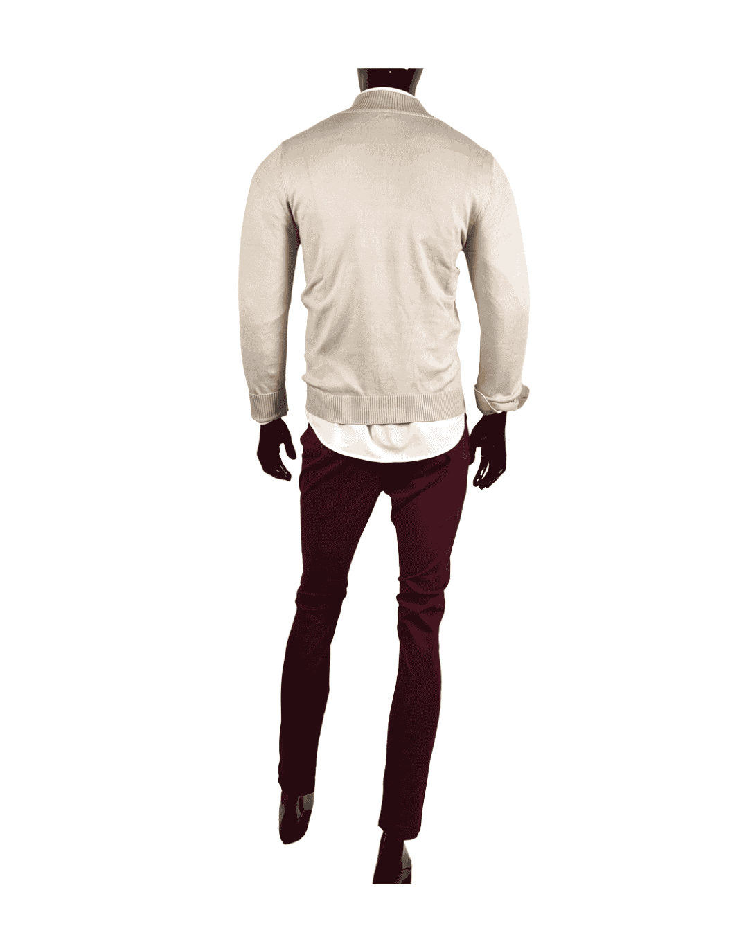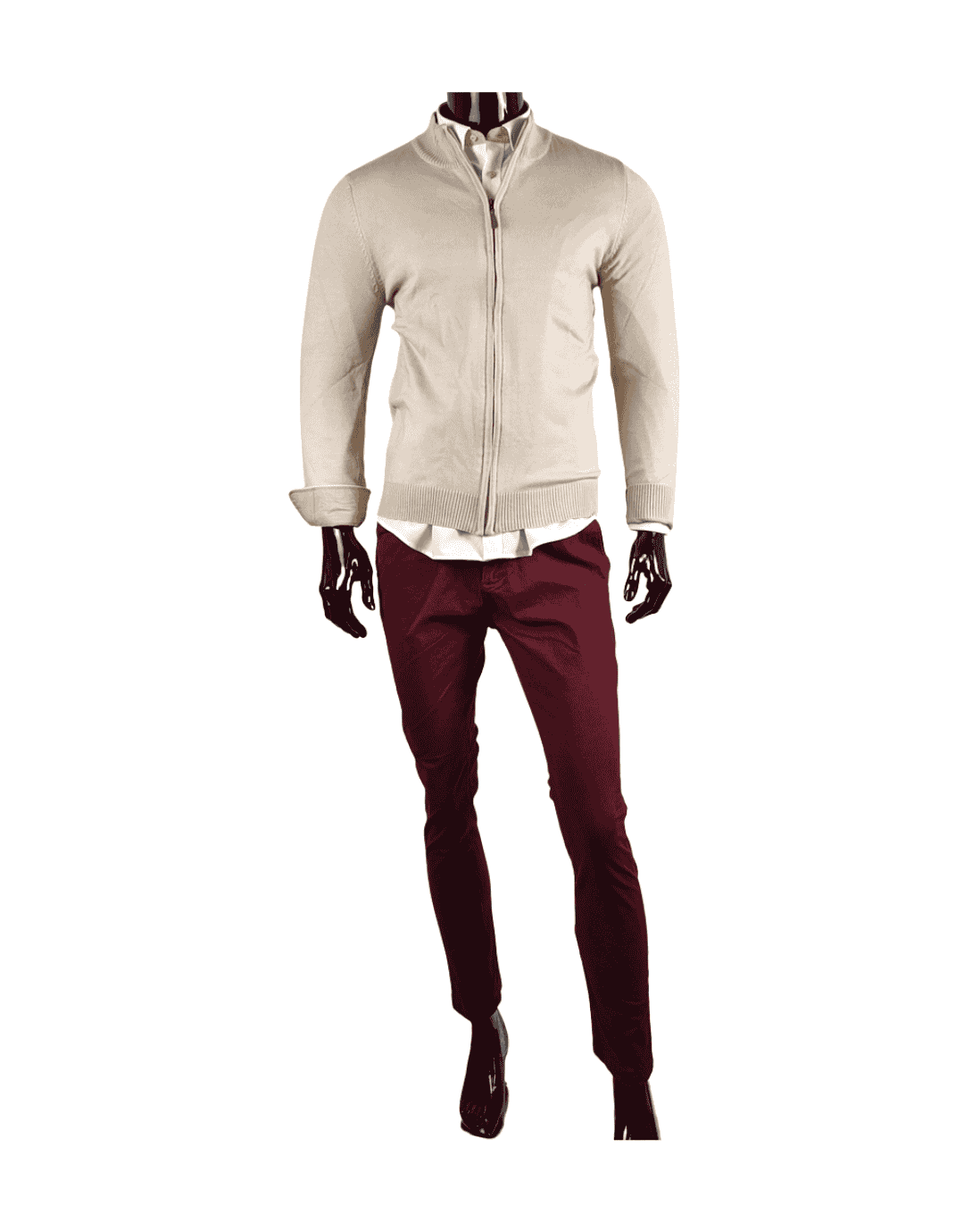 Este conjunto está diseñado para el hombre que busca un estilo cuidado, actual y versátil. La camisa blanca con coderas en beige y detalles en cuello y puños aporta un aire sofisticado con un sutil contraste de color. Se complementa con el cárdigan de cremallera en tono beige crema, una prenda ligera y funcional que suma calidez y comodidad sin perder elegancia. El pantalón estilo chino en color granate añade personalidad y un toque moderno, convirtiéndose en el equilibrio perfecto entre lo clásico y lo contemporáneo. Un outfit pensado para destacar tanto en ocasiones casuales como en momentos más formales con estilo y carácter.