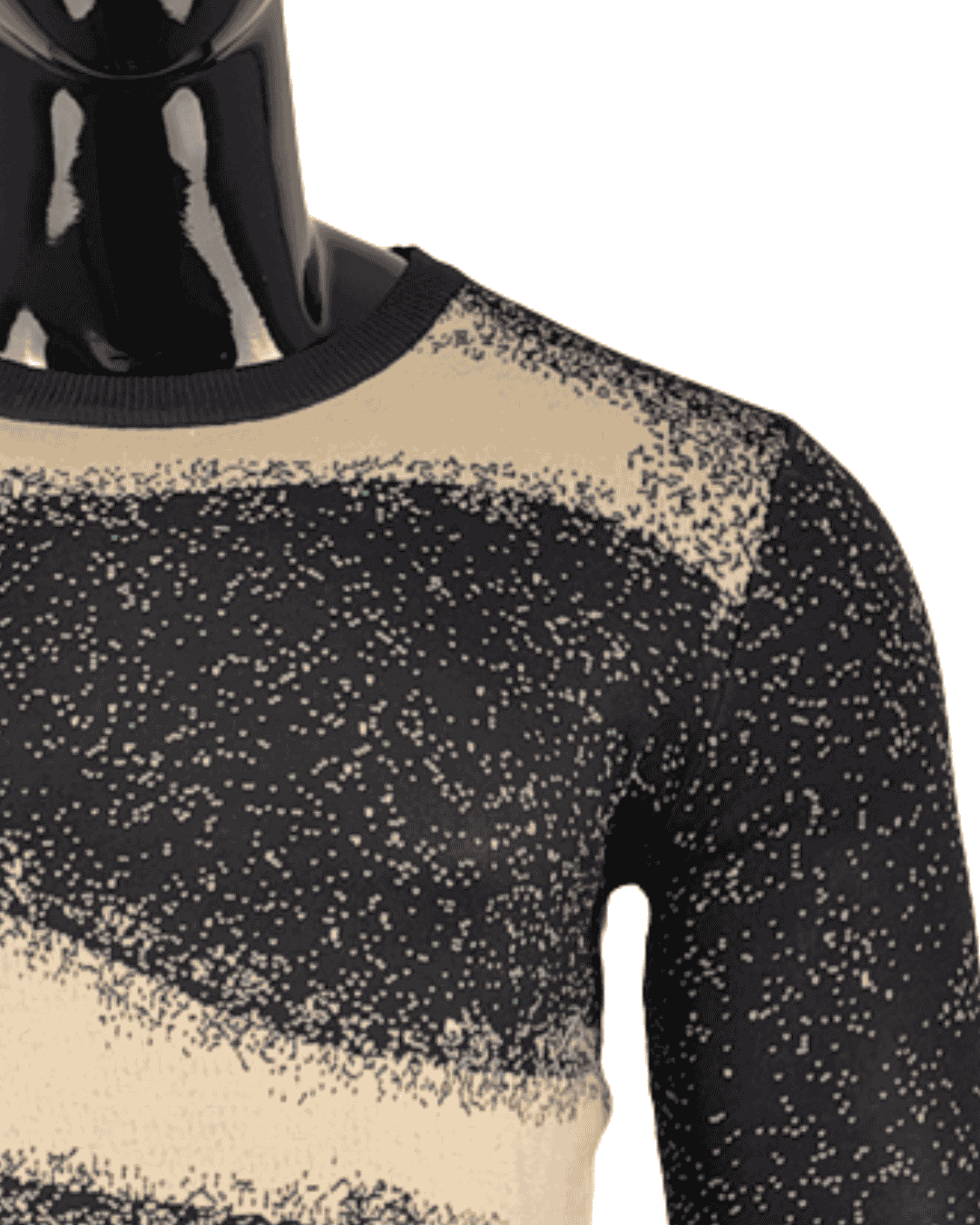Jersey bicolor de punto, confeccionado con hilo suave y flexible para ofrecer comodidad y calidez. Su diseño combina dos tonos que crean un contraste moderno y llamativo, aportando estilo a cualquier look. Presenta corte recto, cuello redondo y acabados de canalé en puños y cintura para un ajuste cómodo y duradero. Una prenda versátil que combina con prendas casuales o semi-formales, perfecta para renovar el armario con un toque de originalidad.