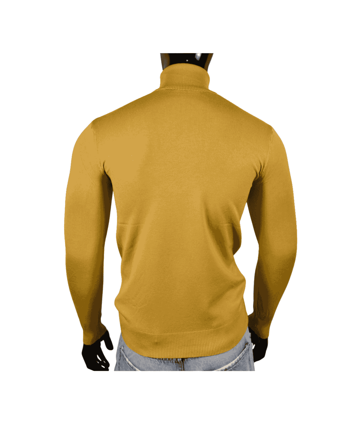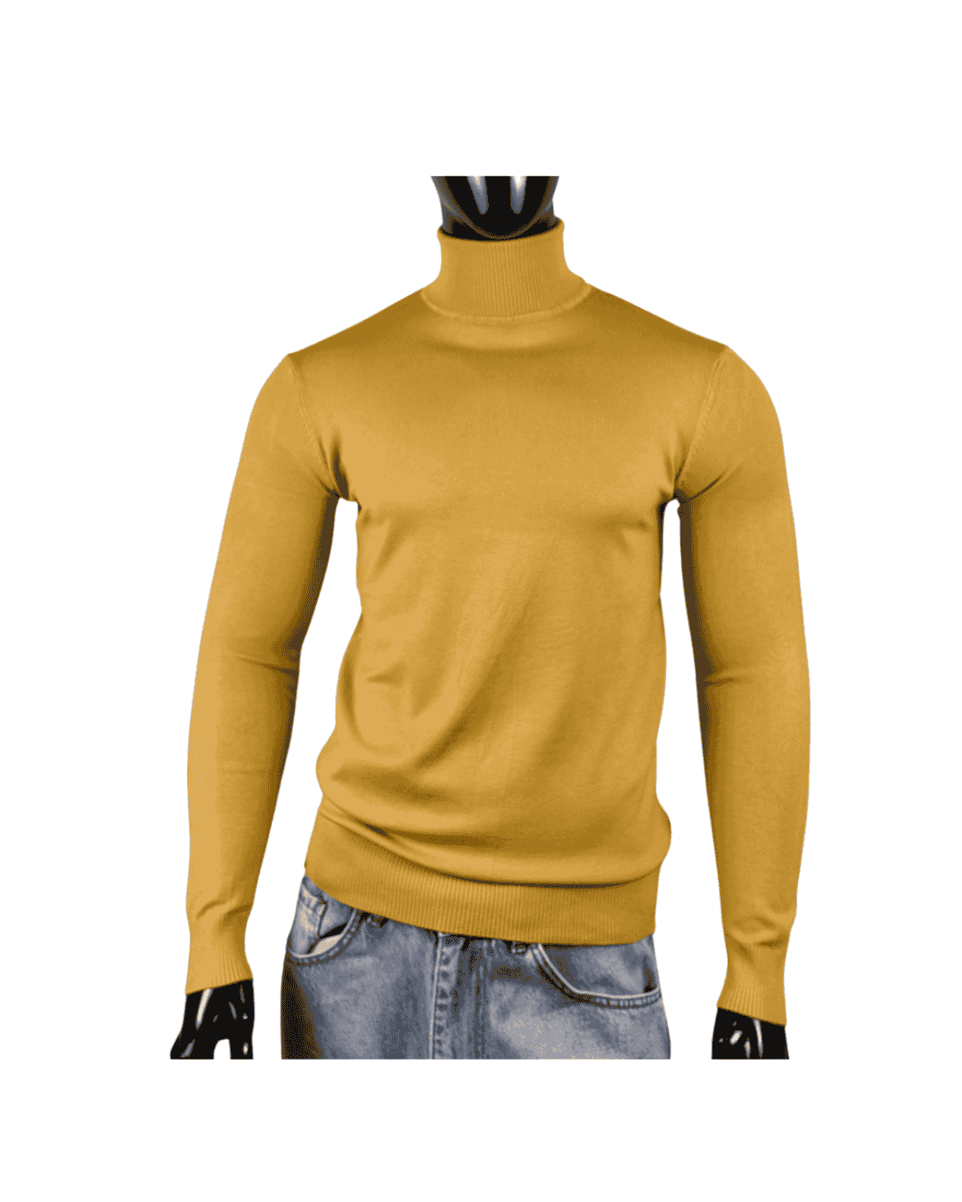 Jersey de cuello alto en color mostaza, confeccionado en punto suave y abrigado para ofrecer máxima calidez y confort. Su diseño elegante y atemporal resalta por el cuello extendido, ideal para proteger del frío con un estilo sofisticado. Cuenta con corte recto y acabados de canalé en puños y cintura que aseguran un ajuste cómodo y favorecedor. Una prenda versátil que se adapta tanto a looks formales como a combinaciones casuales, perfecta para los días más frescos.