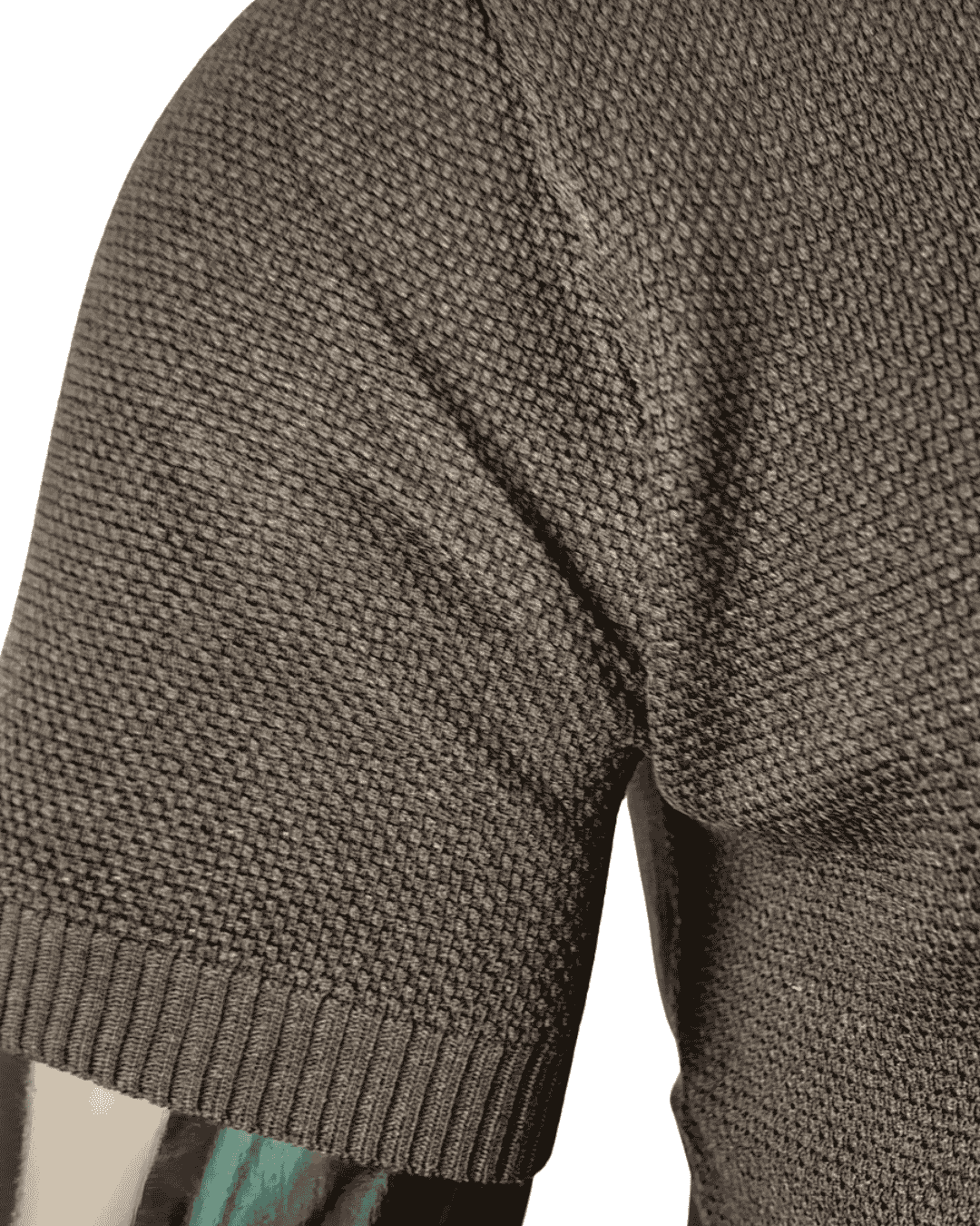Ligero, fresco y versátil, este jersey de punto de manga corta está confeccionado con un tejido transpirable que garantiza comodidad incluso en los días más cálidos. Su diseño combina la elegancia del punto con la practicidad de una prenda casual, ideal para cualquier ocasión.